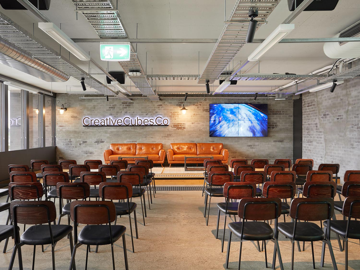 Premium event space inside CreativeCubes.Co Richmond. Perfect for workshops, offsites, launches and awards nights.